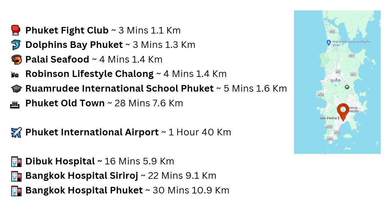 | Dolphins Bay Phuket | 3 Mins 1.3 Km | |